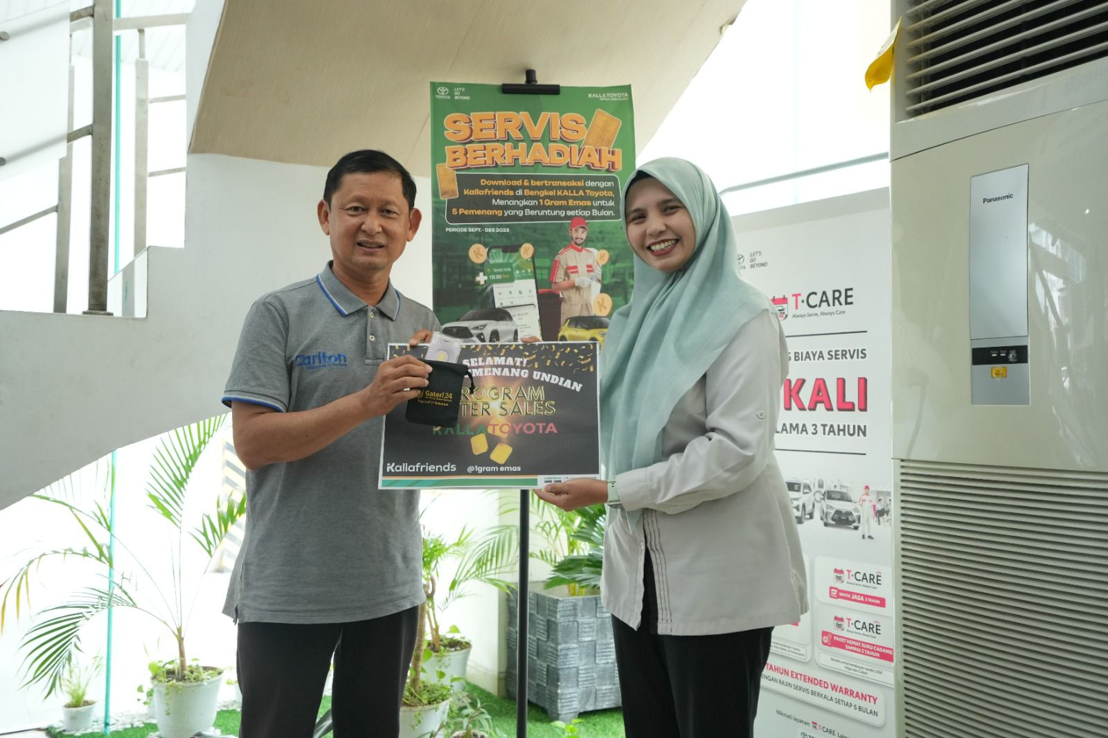 Kalla Toyota memberikan hadiah iPhone 15 kepada pelanggan yang telah membeli Toyota dan memberikan hadiah emas kepada pelanggan yang rutin melakukan servis di bengkel resmi Kalla Toyota. Kalla Toyota mengadakan pengundian hingga keluar nama pelanggan yang beruntung.