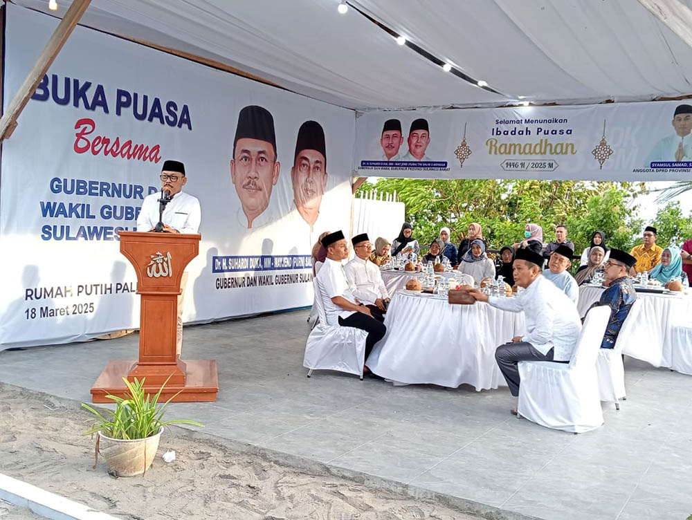 Gubernur Sulawesi Barat, Suhardi Duka saat menghadiri acara buka puasa bersama di kediaman Anggota DPRD Sulbar Syamsul Samad, di Palippis, Desa Bala, Kecamatan Balanipa, Polman, Selasa , 18 Maret 2025. (dok Humas Pemprov Sulbar)