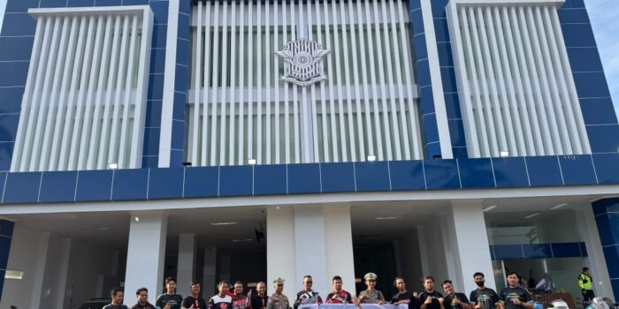 EKSPOSSULBAR.CO.ID, MAMUJU – Direktorat Lalu Lintas (Ditlantas) Polda Sulbar menggelar kegiatan safety riding dan pelatihan berkendara bersama komunitas motor Yamaha NMAX se-Sulawesi Barat, Minggu (20/4/25) di Gedung BPKB Polda Sulbar.