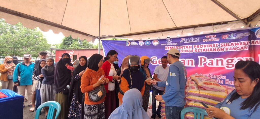 EKSPOSSULBAR.CO.ID, MAMUJU – Pemprov Sulbar melalui Dinas Ketahanan Pangan Sulbar terus melaksanakan Gerakan Pangan Murah (GPM) atau pasar murah di taman Karema Mamuju, sebagai upaya mengendalikan inflasi agar tidak mengalami kenaikan signifikan, Selasa 1 Juli 2025.