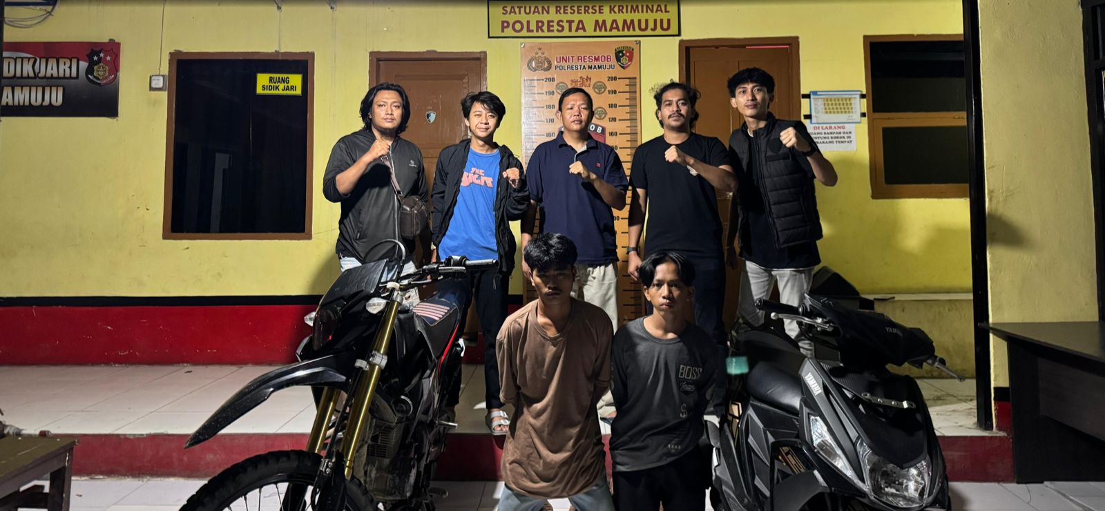 Dalam penangkapan ini, aparat turut mengamankan dua unit sepeda motor sebagai barang bukti, yakni Yamaha Mio M3 dan Honda CRF.