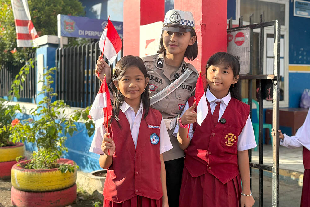 Petugas Ditlantas Polda Sulbar terlihat aktif membagikan bendera merah putih mini kepada para pengendara yang melintas. Aksi ini bukan sekadar pembagian bendera biasa, melainkan upaya kreatif untuk mengobarkan semangat kemerdekaan di tengah masyarakat.